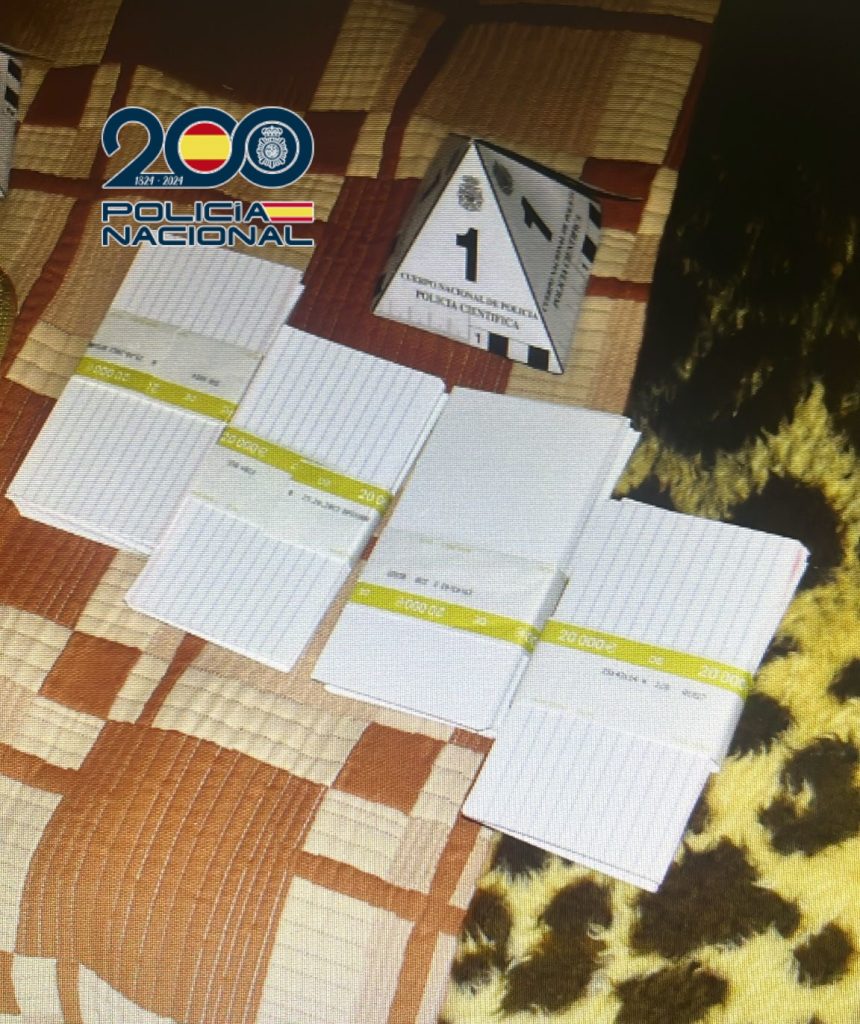 guardaba el dinero. Aunque los paquetes de billetes conservaban su cinta exterior, en el interior había papeles cortados del tamaño de billete de 200 euros.