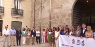 Vox elude situarse tras la pancarta de Corts Valencianes por la última víctima de violencia de género