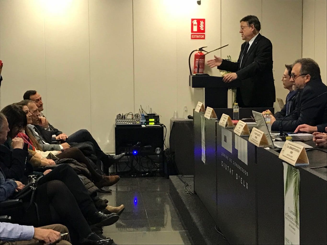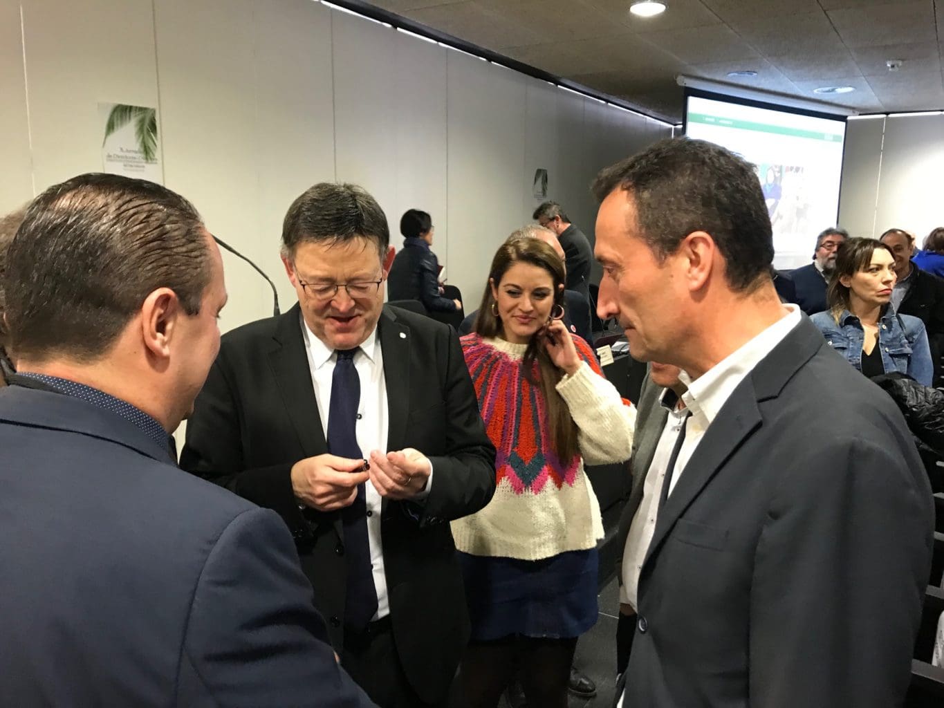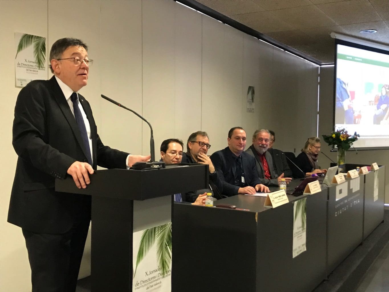 Ximo Puig estuvo acompañado por el alcalde ilicitano, Carlos González, el secretario autonómico de Educación, Miquel Soler, el presidente de la asociación que ha organizado las jornadas (ADIESPV), Toni Gonzàlez, y los miembros del equipo de gobierno municipal Mireía Mollà, Patricia Maciá, Tere Maciá y Carlos Sánchez, entre otros.