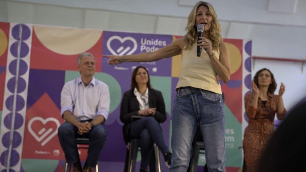 La vicepresidenta segunda del Gobierno, Yolanda Díaz, arropó en la tarde del miércoles 24 de mayo en Alicante las candidaturas de Unides Podem para «derrotar al Partido Popular» y pidió concentrar el voto para reeditar un tercer Botànic «porque si no alcanzamos el objetivo van a gobernar ellos», en alusión a la barrera del 5% que le permita acceder al hemiciclo autonómico.